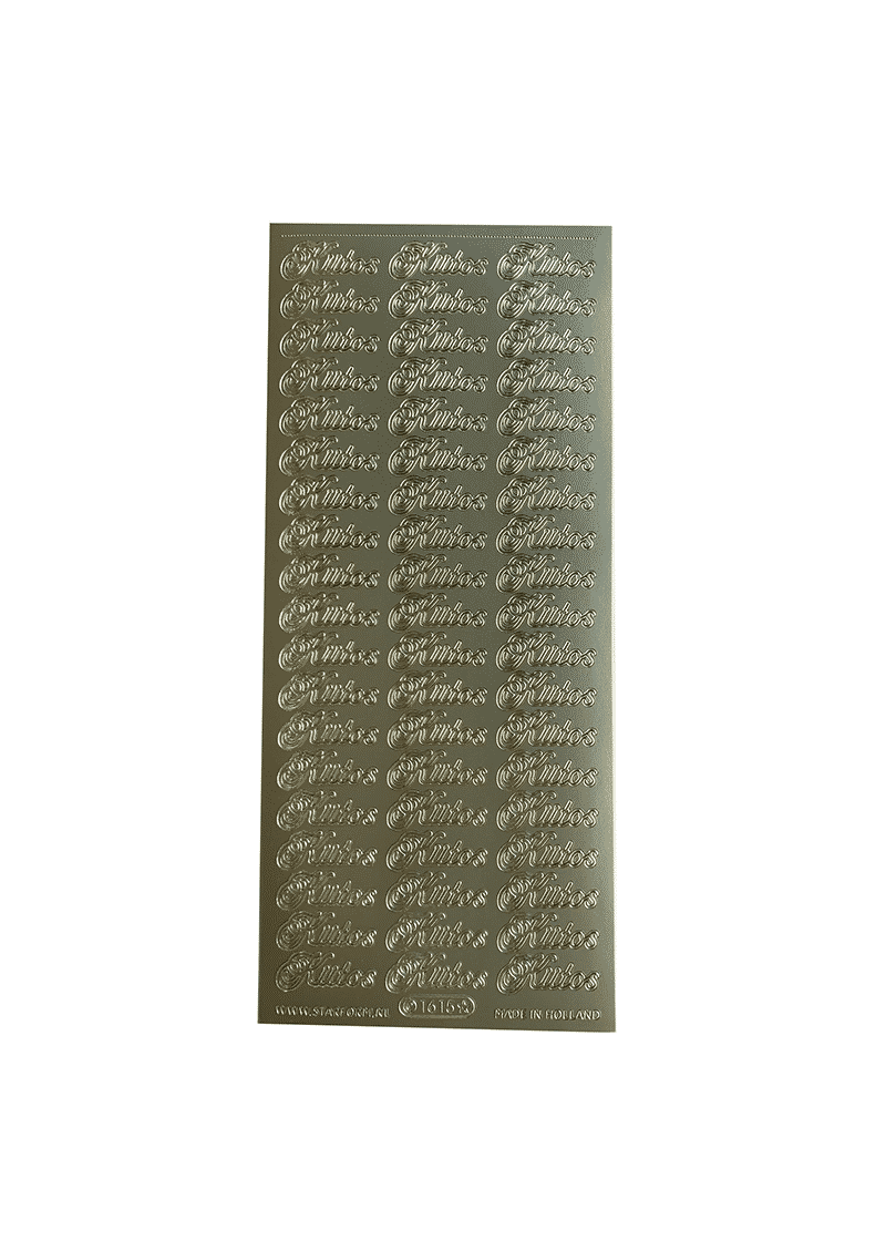 Hopeiset ääriviivatarrat kiitos teksteillä. Arkin koko 10x23cm.