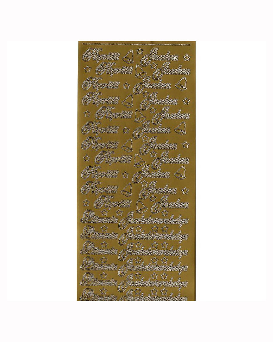 Kultaiset ääriviivatarrat Joulun toivotuksilla. Arkissa 17 tarraa.