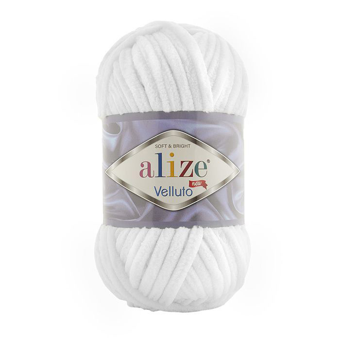 Alize Velluto lanka on ihanan pehmeää paksua lankaa, josta voi virkata tai neuloa esimerkiksi torkkupeittoja, vauvan peittoja, peholeluja tai asusteita. Lanka on 100% Mikropolyesteriä, se on suloisen pehmeää ja siinä on samettimainen pinta. Paksusta langasta neuleet ja virkkuutyöt valmistuvat nopeasti.
