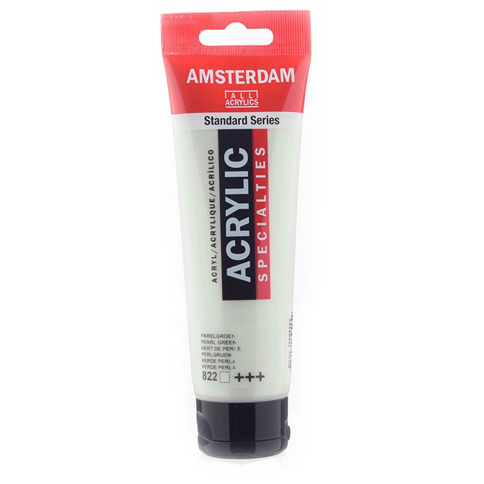 Pearl Green (822) on läpikuultava väri, jolla saa tehtyä upeaa helmiäishohtoa vihreän sävyssä. Väri näkyy parhaiten mustalla pinnalla. Värillä on erinomainen valonkesto (+++).