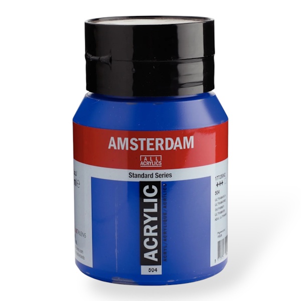 Ultramarine (504) on läpinäkyvä väri, jolla on erinomainen valonkesto (+++).