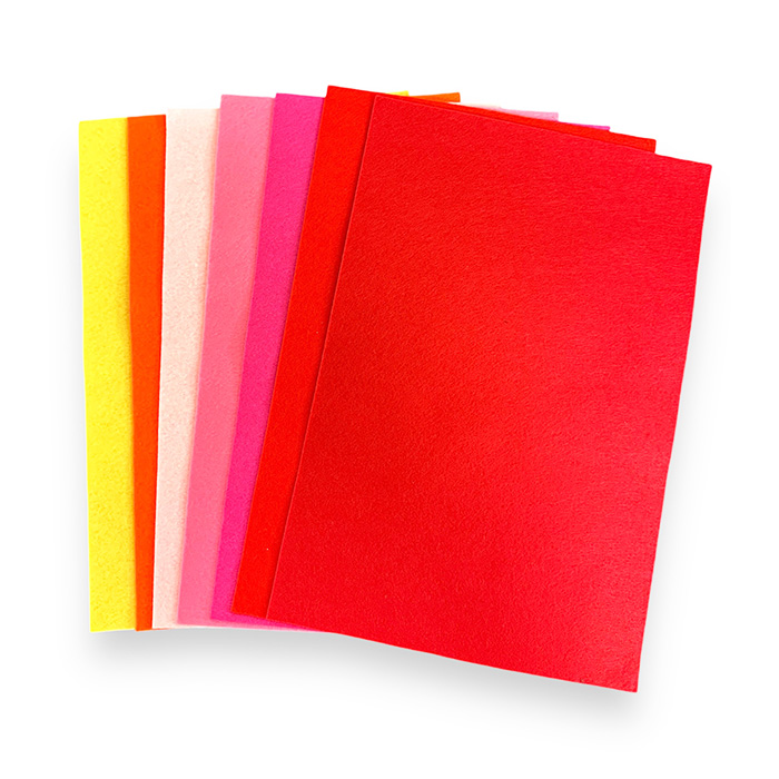 Askarteluhuopa-arkki, jonka koko on noin 20x30cm.  Huovan paksuus 1mm ja vahvuus 200g/m2. Huopa on 100% polyesteriä.
