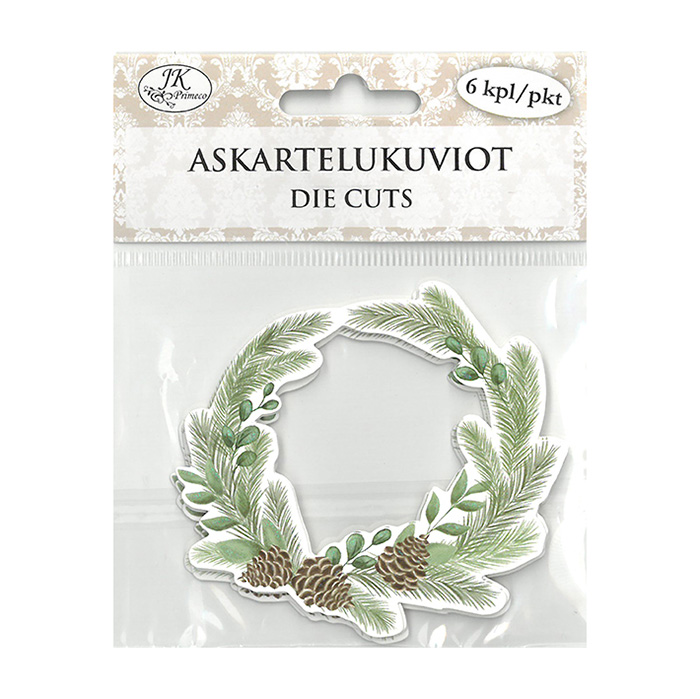 Askartelukuviot esimerkiksi joulukorttiaskarteluun. Kuvion koko noin 7 x 7,5cm. Pakkauksessa 6kpl.
