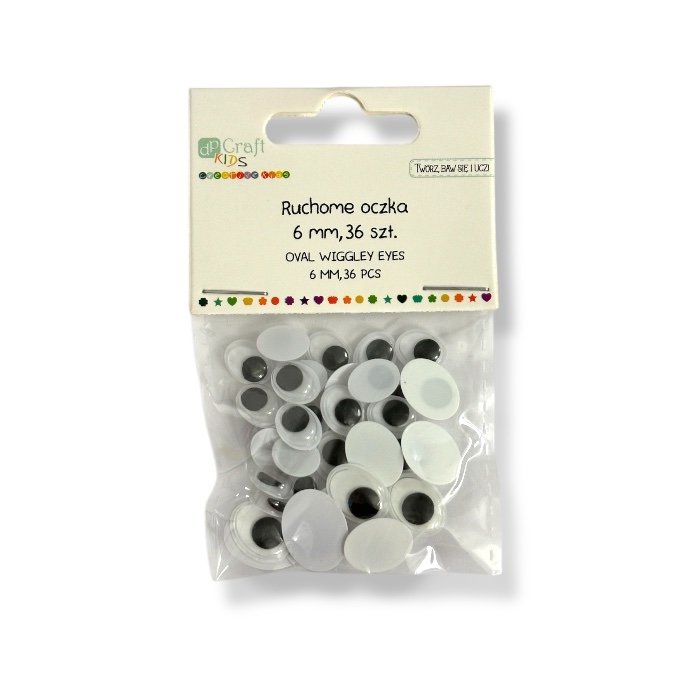 Liikkuvat valkoiset askartelusilmät ovaalin muotoisina. Pakkauksessa yhteensä 36kpl silmiä, joiden koot: 8x10mm, 10x13mm ja 12x16mm.