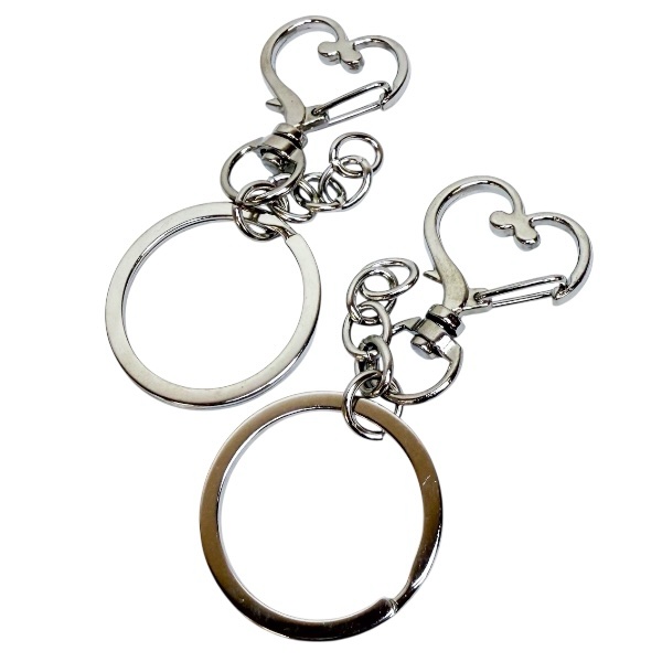 Hopean värinen avainrengas sydänkoristeella ja ketjulla. Avainrenkaan halkaisija 3cm ja sydänkoristeen koko 2,3×2,3cm. Pakkauksessa 2 kpl.