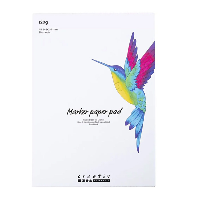 Tussipaperilehtiö, joka sopii erittäin hyvin sekä alkoholipohjaisille, että muille tusseille. Paperi on kirkkaan valkoista ja sileää. Lehtiössä on 30 arkkia 120g vahvuista paperia. Paperin koko lehtiössä 14,8×21 cm.