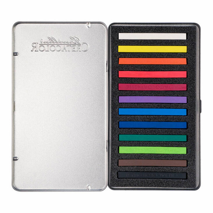 Cretacolorin laadukkaat kovat pastelliliidut sopivat niin aloittelijan, kuin kokeneemmankin taiteilijan käteen. Liitujen neliönmallinen muoto soveltuu hyvin sekä suurten pintojen, että pienten yksityiskohtien maalaamiseen. Niille on ominaista erityisen pehmeät, öljyttömät vedot. Kovat pastellit ovat paljon vähemmän pölyisiä kuin pehmeät pastellit. Kaikki värit voidaan sekoittaa keskenään, sotkea tai liuottaa vedellä. Kovia pastelleja levitettäessä useimmille paperipinnoille suositellaan kiinnityssuihketta. Liidun pituus on 70mm ja paksuus 6mm. Pakkauksessa 12 väriä metallirasiassa.