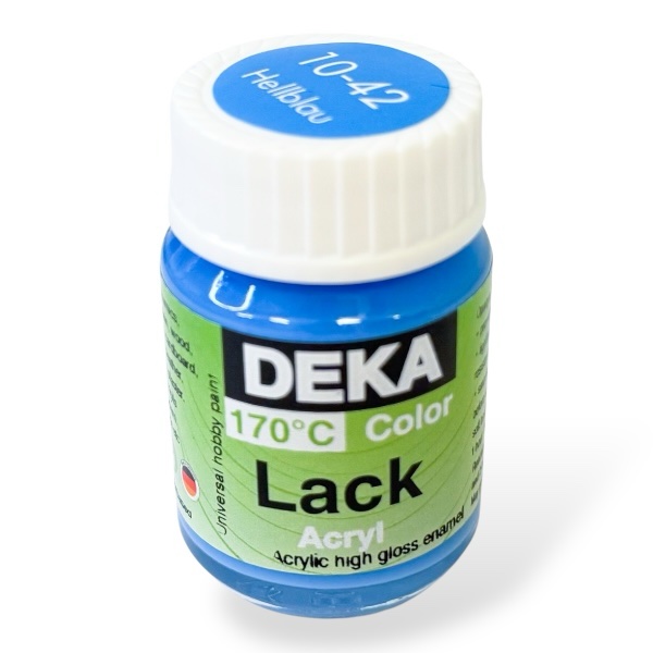 Deka Lack on vesipohjainen ja kuultava askartelumaali monenlaisille pinnoille, kuten esimerkiksi puulle, massalle, kivelle, styroxille, kipsille, pahville, paperimassalle, lasille, metallille jne.