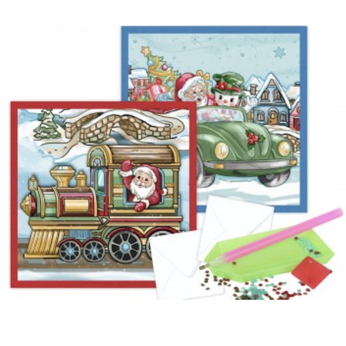 Dotty Designs Mini timanttimaalauskorttisetti 10x10cm 2kpl, DDDM1007 Santa’s Journey, Partial Crystal
