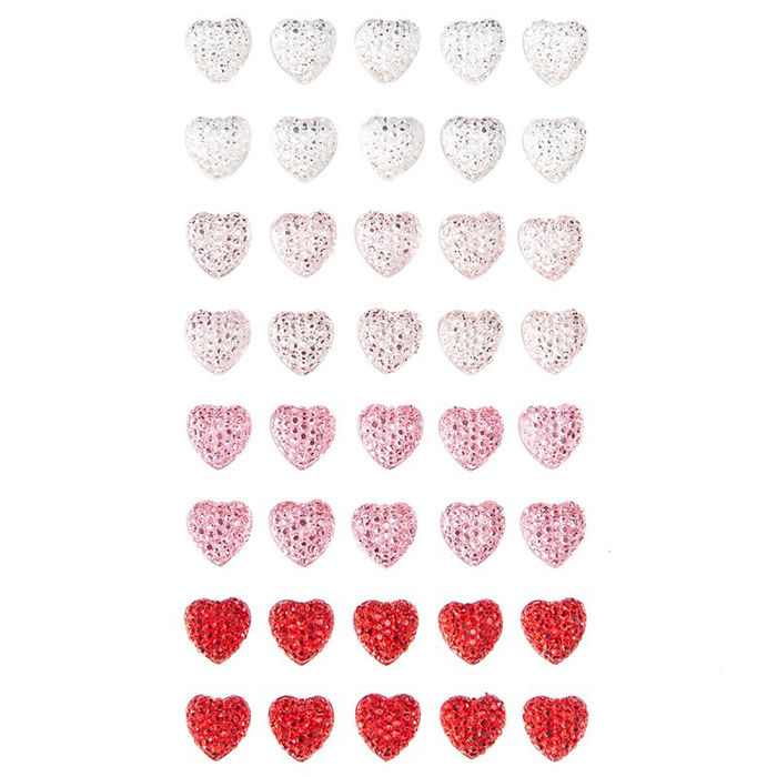 Näyttävät sydäntarrat esimerkiksi korttiaskarteluun. Sydänten koko noin 1x1cm ja korkeus noin 2mm. Pakkauksessa 40 kpl tarroja.