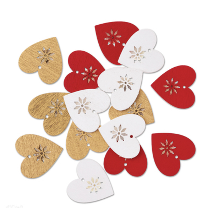 Puiset sydänkoristeet, joissa tarrapala takana. Sydämen koko noin 3x3cm. Pakkauksessa kolmen värisiä sydänkoristeita, yhteensä 16 kpl.