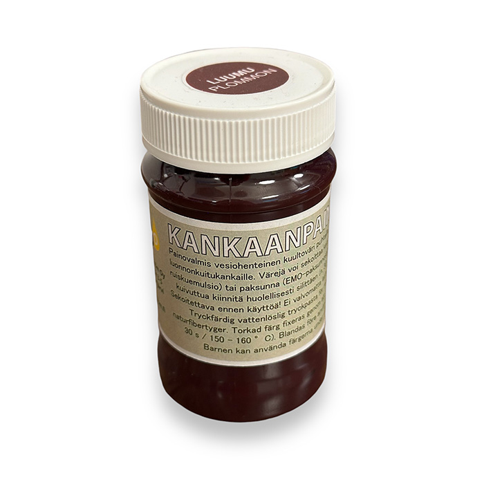 EMO kankaanpainoväri on valmis kankaanpainoväri vaaleille luonnonkuitukankaille. Värejä voidaan sekoittaa keskenään uusien sävyjen saamiseksi. Värin kiinnitys kankaaseen silittämällä värin kuivuttua.