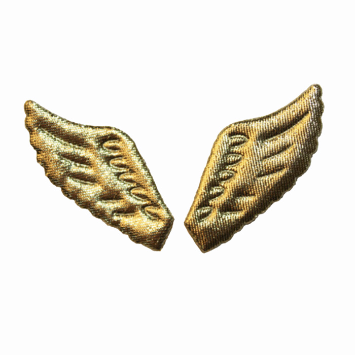 Pehmeät kullanväriset enkelin siivet askarteluun. Siipien korkeus noin 4cm ja levein kohta noin 2,5cm. Pakkauksessa 2kpl.