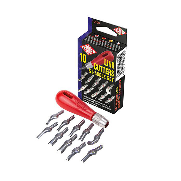 Essdee Lino kaiverrusteräsarja, 10 terää ja kahva
