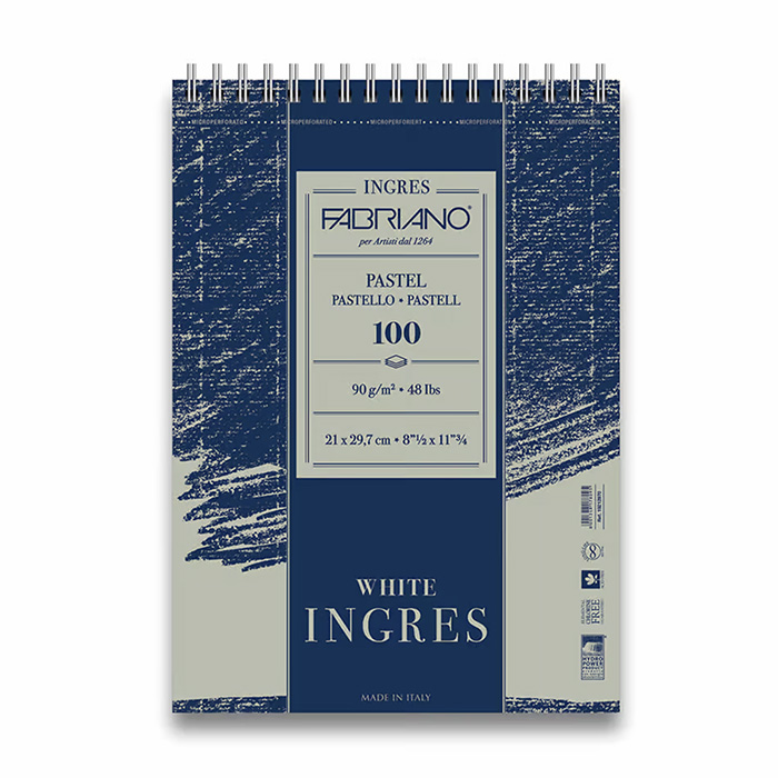 Fabrianon laadukas Ingres pastellipaperi on ihanteellinen paperi pastelli, hiili- ja lyijykynä piirroksille. A4-kokoisessa kierrelehtiössä on 90g vahvuinen valkoinen paperi.