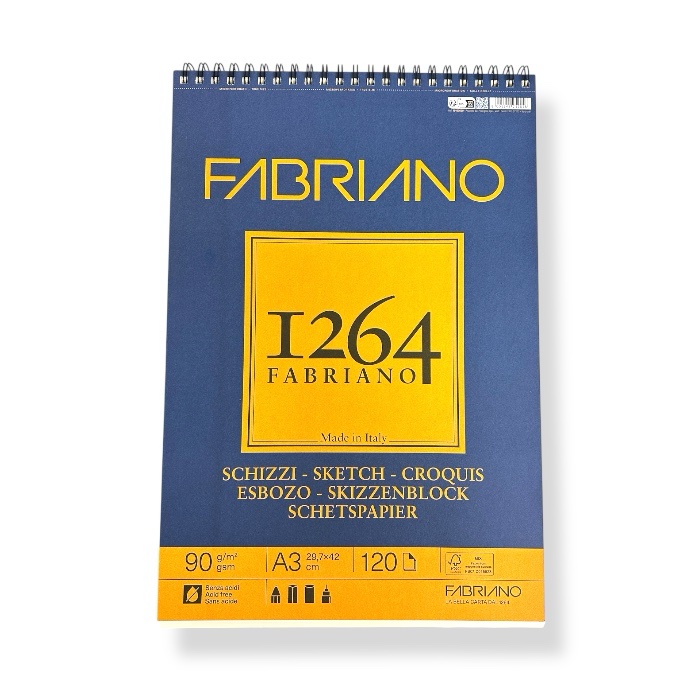 Fabrianon laadukas luonnoslehtiö, jossa on paljon paperia edullisesti. Paperin vahvuus on 90g/m2 ja siinä on 120 arkkia. Lehtiössä on kierreselkä ja paperin yläreunassa katkoviivat, josta saa tarvittaessa repäistyä paperin irti helposti. Lehtiön koko on A3 eli 29,7x42cm.