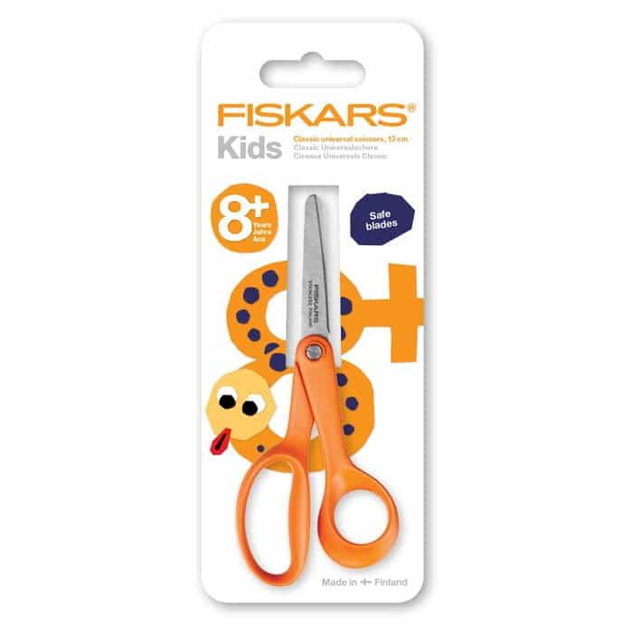 Fiskars Classic lasten oikeakätiset sakset. Korkealaatuisesta ruostumattomasta teräksestä valmistettujen terien ansiosta nämä sakset pysyvät terävänä myös kovemmassa käytössä. Niissä on myös turvallisempi, pyöristetty kärki ja säädettävä terän kireys, aivan kuten aikuisten saksissa. Nämä sakset sopivat ihanteellisesti kahdeksanvuotiaille ja sitä vanhemmille lapsille.