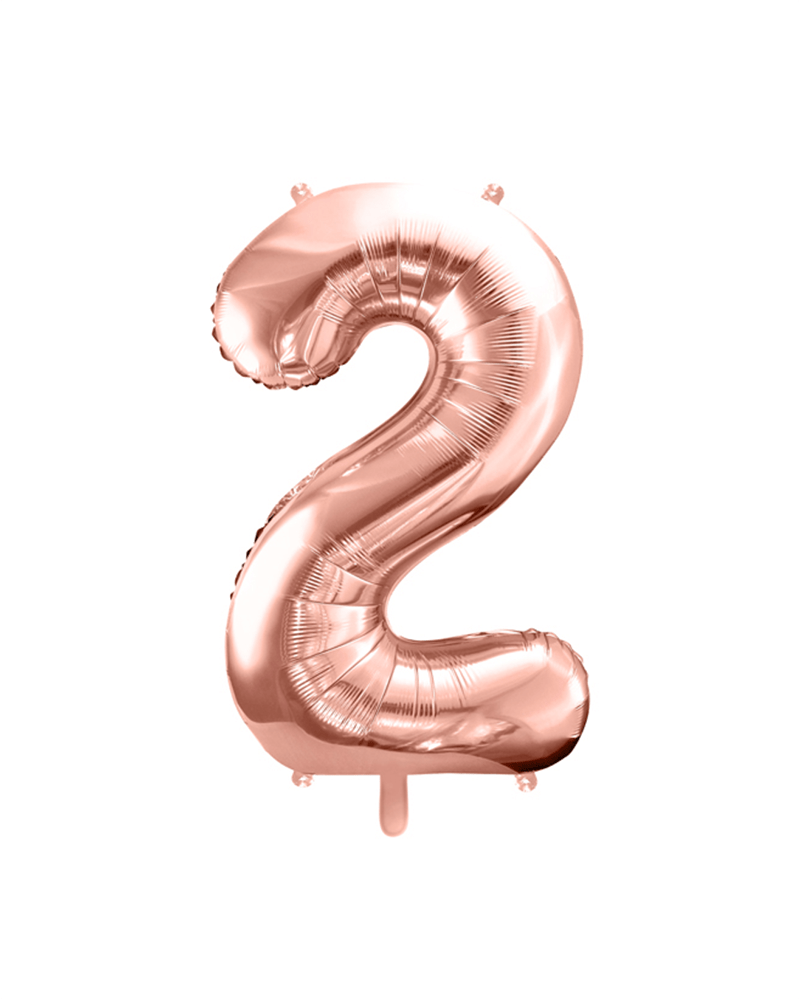 Ruusukullan värinen foliopallo numero 2. Korkeus 86cm.