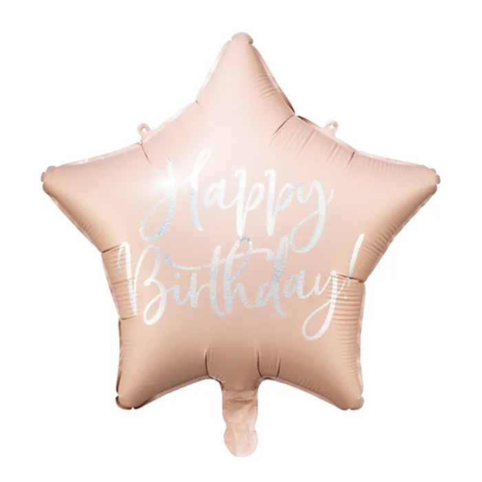 Foliopallo tähti 40cm, Happy Birthday vaaleanpunainen
