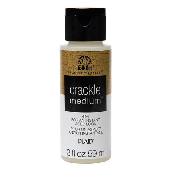 Crackle medium on vesiliukoinen lisäaine, jolla luot maalaamallesi työlle kulunutta ja halkeilevaa pintaa. Pohjamaalaa ensin pinta esimerkiksi FolkArtin akryylimaalilla. Valitse väri jonka haluat näkyvän halkeilun alta . Anna kuivua 1 tunti. Levitä seuraavaksi Crackle medium päälle. Anna kuivua jälleen 1 tunti ja maalaa sitten kontrastivärillä, joka erottuu pohjaväristä. Halkeilu alkaa näkyä läpi maalin kuivuttua.