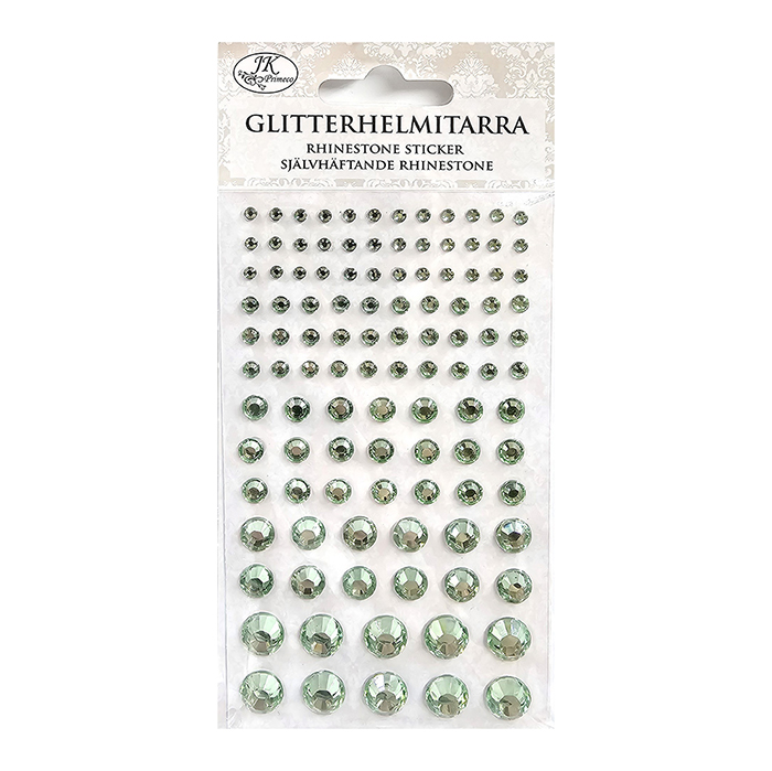 Glitterhelmitarrat esimerkiksi korttiaskarteluun ja muuhun koristeluun. Pakkauksessa 5 eri kokoista tarraa: 3mm, 4mm, 6mm, 8mm ja 10mm.