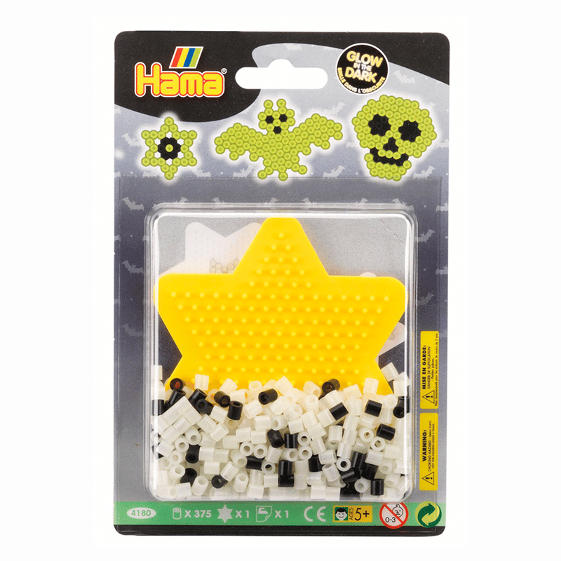 Hamahelmisetti, joka sisältää noin 375 kpl helmiä, joista osa on pimeässä hohtavia ja tähden muotoisen silitysalustan. Mukana myös ohjeet sekä silityspaperia. Ikäsuositus +5.
