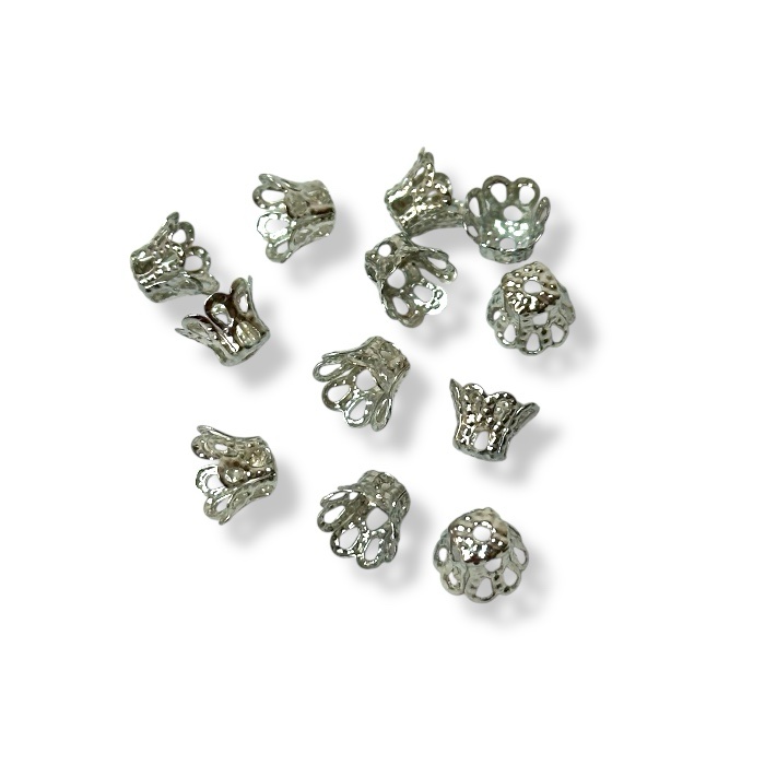 Hopean värinen helmihattu koruaskarteluun. Hatun halkaisija 6mm. Materiaalina nikkelitön korumetalli. Pakkauksessa 12kpl.