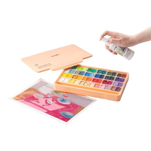 HIMI gouache spray medium on erityisesti “jelly cup” -guassiväreille suunniteltu käytännöllinen lisävaruste, joka auttaa pitämään maalisi aina käyttövalmiina.