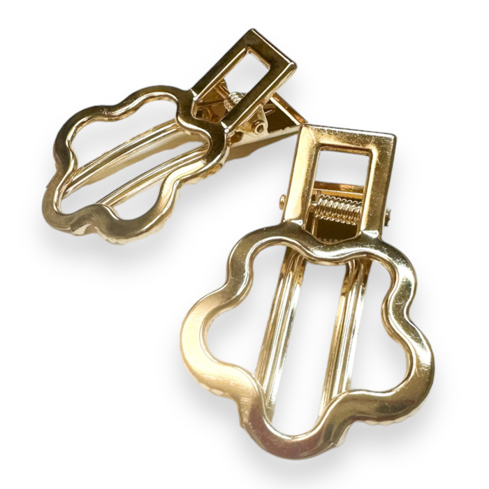 Kullan värinen metallinen hiusklipsi, jonka pituus noin 53mm ja leveys 37mm. Pakkauksessa klipsejä 2 kpl.