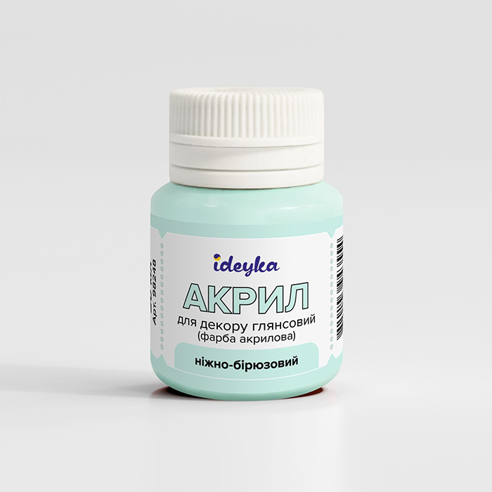 Ideykan akryylimaali on laadukasta Ukrainalaista askartelumaalia, joka sopii monille eri pinnoille, kuten esimerkiksi paperille, pahville, puulle, kivelle, muoville ja metallille. Maali on valmistettu korkealaatuisista pigmenteistä ja sen koostumus on kermaista ja juuri sopivan juoksevaa ilman lisäohennusta. Maali levittyy tasaisesti ja kuivuu nopeasti. Se on maalatessa vesiliukoista ja kuivuttuaan veden kestävää. Lisäkestoa maalipinnalle saa lisäämällä kuivumisen jälkeen lakan päälle. Purkkikoko 20ml.