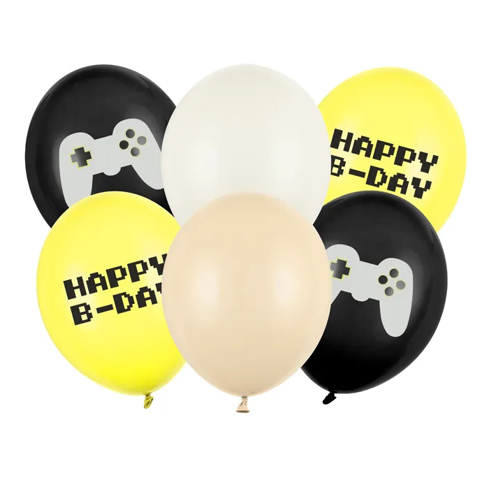 Ilmapallolajitelma, jossa 6 ilmapalloa. Ilmapallojen koko noin 30cm.