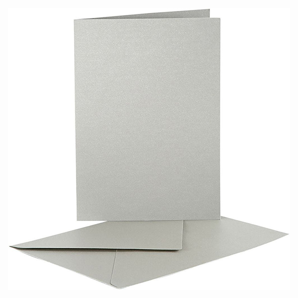 Kaksiosaiset helmiäiskorttipohjat ja kirjekuoret, A6/C6 Hopea 10kpl