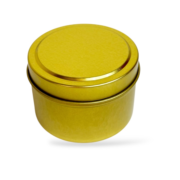 Kannellinen metallipurkki, mitä voit käyttää vaikkapa säilytykseen tai valaa esimerkiksi pienen soijavahakynttilän. Purkin halkaisija on 65mm, korkeus kannen kanssa 45mm. Kappalehinta.
