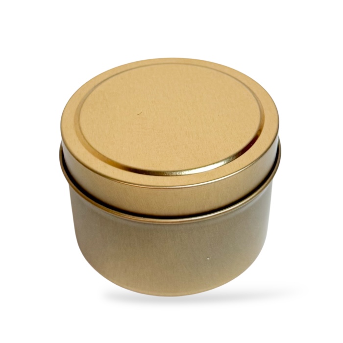 Kannellinen metallipurkki, mitä voit käyttää vaikkapa säilytykseen tai valaa esimerkiksi pienen soijavahakynttilän. Purkin halkaisija on 65mm, korkeus kannen kanssa 45mm. Kappalehinta.