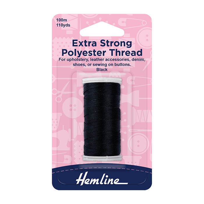 Erittäin vahva musta lanka ompeluun. Lanka on 100% polyesteriä. Rullassa on 100 metriä lankaa.