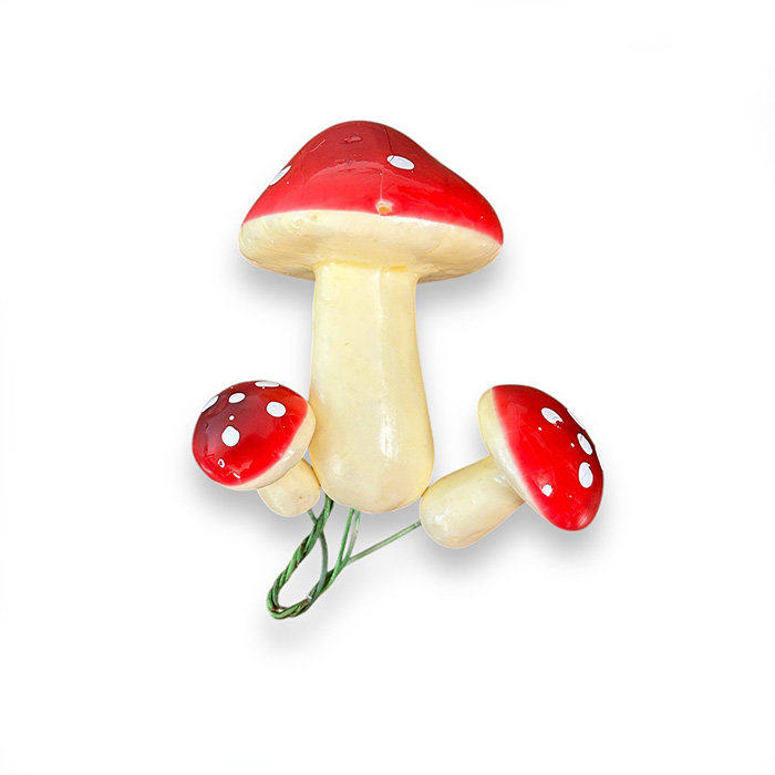 Kärpässieni koristeet esimerkiksi jouluisiin kransseihin ja asetelmiin.  Pakkauksessa on kolme eri kokoista kärpässientä rautalangalla yhteen kiedottuna. Sienet saa otettua erilleen. Isoimman sienen korkeus noin 7,5cm.