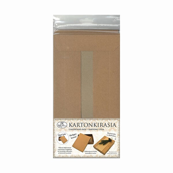Taiteltava kartonkirasia, jonka koko 14,5×10,5x5cm. Pakkauksessa 2 kannellista rasiaa. Täydellinen lahjarasiaksi.