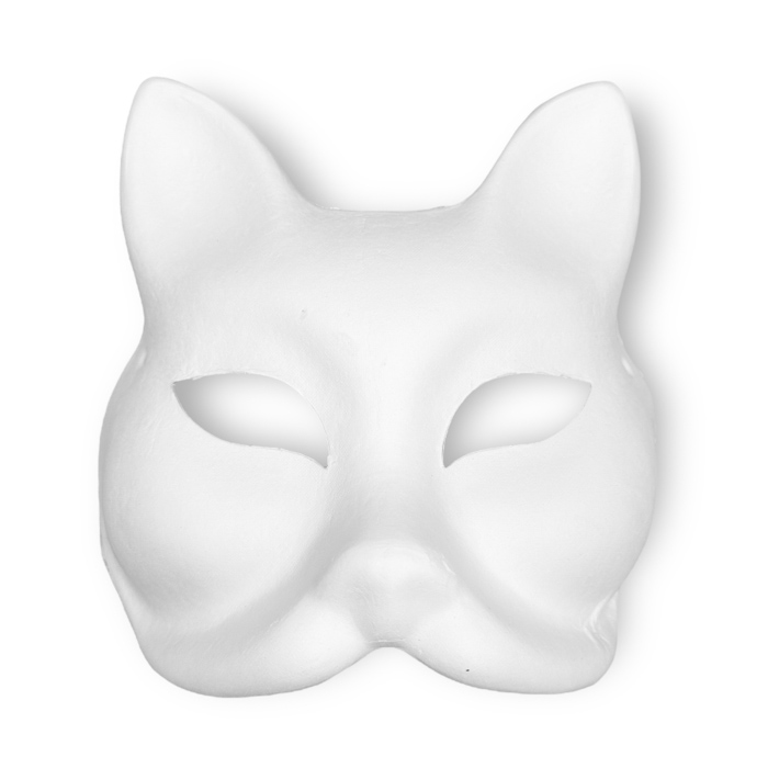 Valkoinen naamiopohja, jonka koristelussa on vain taivas rajana! Voit maalata naamion esimerkiksi askartelumaaleilla tai -suihkeilla, muovata kevyillä muovailuvahoilla ja koristella esimerkiksi höyhenillä, kristalleilla ja muilla koristeilla.