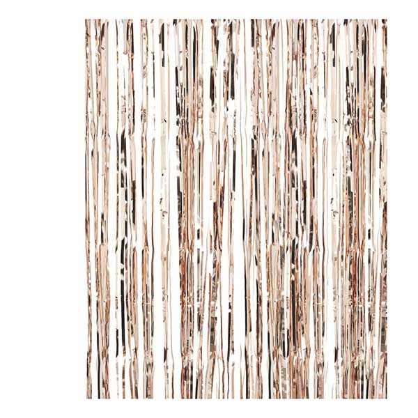 Näyttävä ruusukultainen kimalleverho juhliin koristeeksi ja valokuvaustaustaksi. Verhon leveys 1m ja korkeus 2,5m.