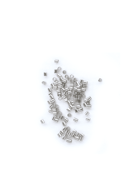 Hopeanväriset kiristyshelmet koruaskarteluun. Koko 2,0 x 1,5mm. Pakkauksessa 100kpl. Materiaali nikkelitöntä korumetallia.