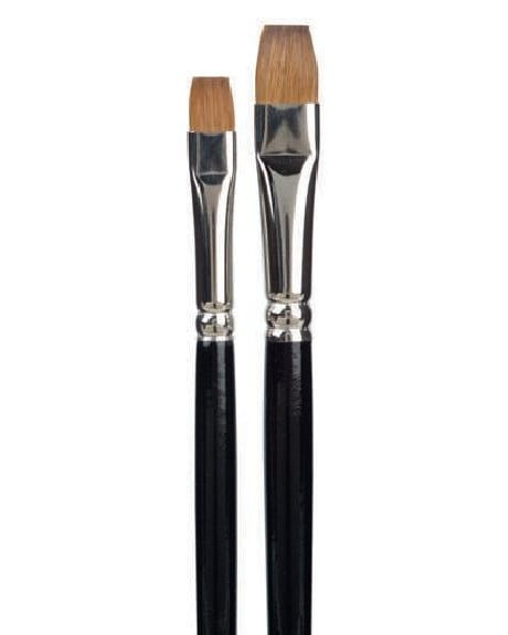 Kolibrin taiteilijalaadun lattapäiset siveltimet, jotka ovat valmistettu parhaimmasta punanäädänkarvasta.
