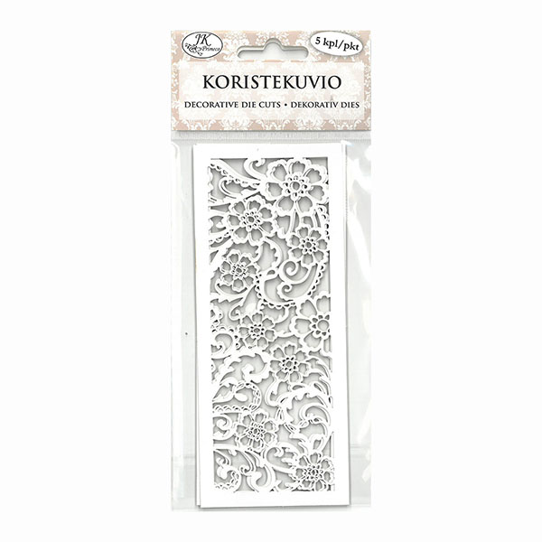 Koristekuviot esimerkiksi korttiaskarteluun ja muuhun koristeluun. Kuvion koko noin 14,8 x 6cm. Pakkauksessa 5 kpl.