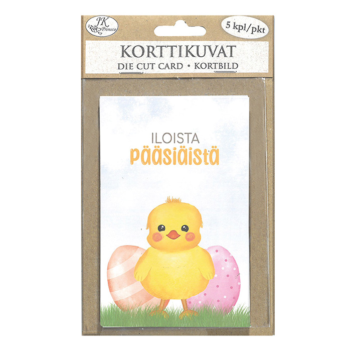 Korttikuvat esimerkiksi pääsiäiskorttien askarteluun. Yhden kuvan koko on noin 8×12,5cm. Pakkaus sisältää 5kpl kuvia.