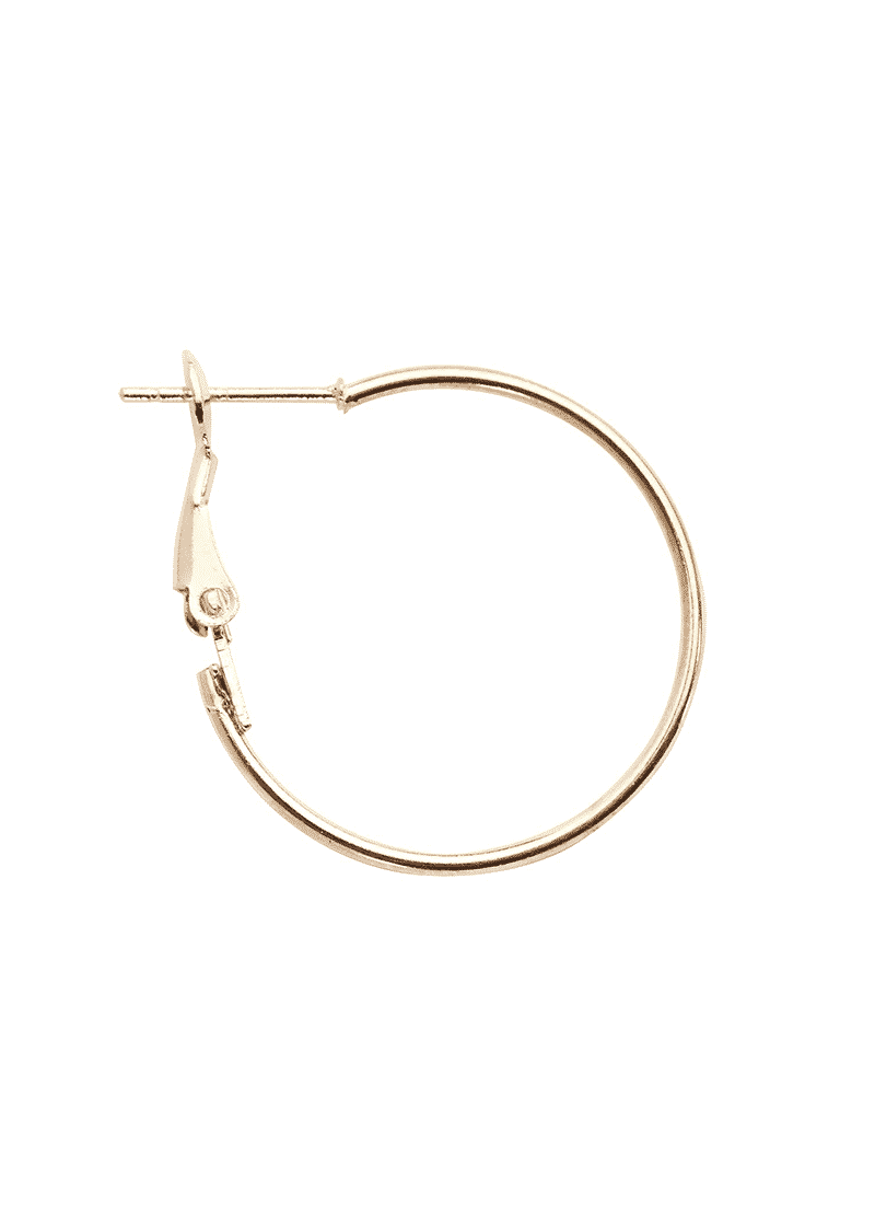 Kullanvärinen metallinen korvakoru, johon voi kiinnittää esimerkiksi riipuksen. Halkaisija 25mm. Pakkauksessa 8kpl.