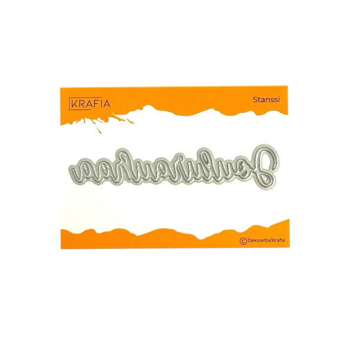 Stanssi Joulurauhaa tekstillä. Stanssin koko noin  8,3×1,7cm. Stanssit sopivat eri kuvioleikkureihin.