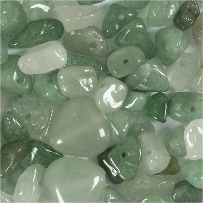 Upeat Aventuriinikvartsi kristallihelmet koruaskarteluun. Pakkaus sisältää: 2 kpl 12 mm:n sydämiä, 1 kpl 7–10 mm:n pyöreitä helmiä ja 60 kpl siruhelmiä. Helmien halkaisijat 7-12mm ja aukon koko noin 1mm.