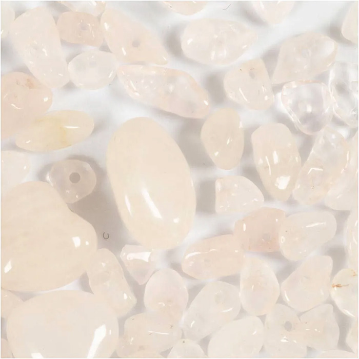 Upeat Ruusukvartsi kristallihelmet koruaskarteluun. Pakkaus sisältää: 2 kpl 12 mm:n sydämiä, 1 kpl 7–10 mm:n pyöreitä helmiä ja 60 kpl siruhelmiä. Helmien halkaisijat 7-12mm ja aukon koko noin 1mm.