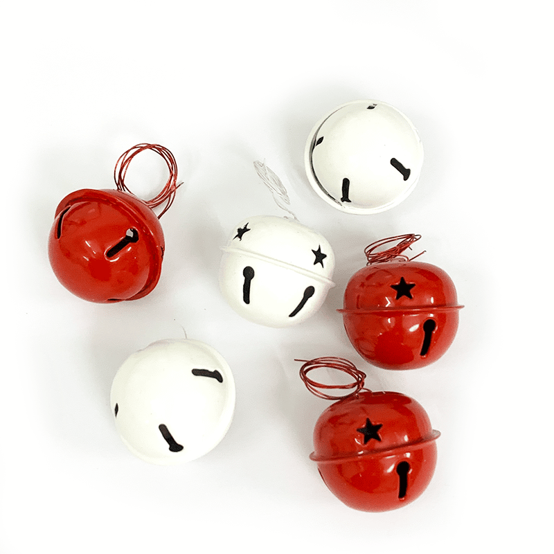 Punaiset ja valkoiset kulkuset jouluaskarteluun. Kulkusten koko noin 3cm. Pakkauksessa 6kpl.