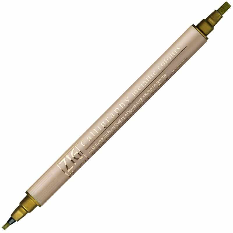 ZIG Memory System Calligraphy -kynät ovat kaksikärkisiä, vesipohjaisella pigmentillä varustettuja kalligrafiakyniä. 2 mm ja 3,5 mm viistokärjet.
