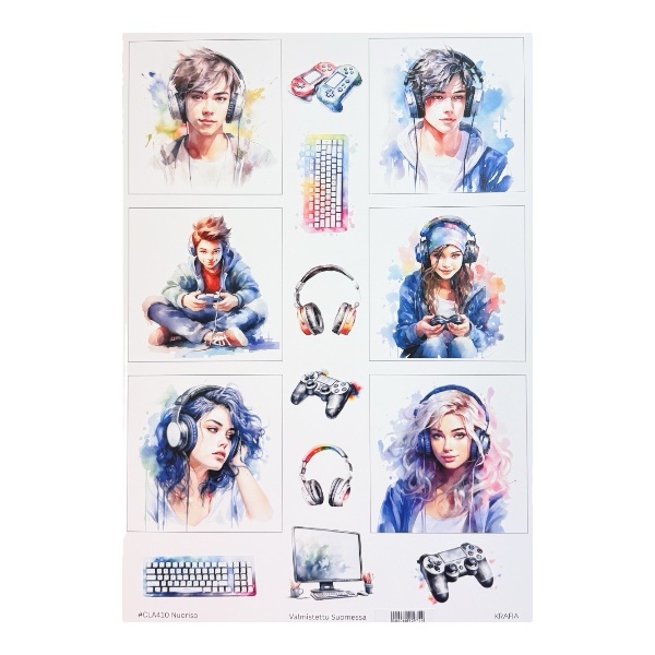 A4 kokoinen kuva-arkki, jossa ihania kuvia esimerkiksi korttiaskarteluun. Kartongin vahvuus 250g. Valmistettu Suomessa.